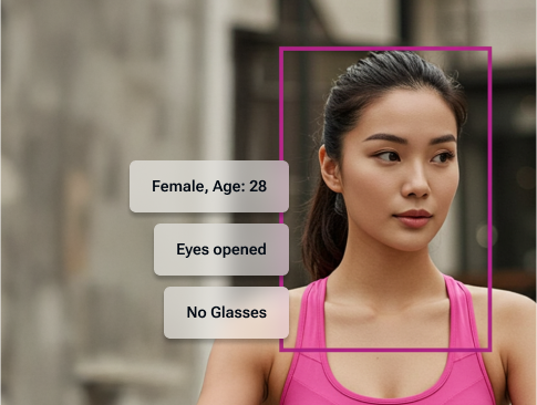 Real time analysis of the customer’s face to know gender, approx. age, and if customer is wearing any glasses, cap, facial hair etc.