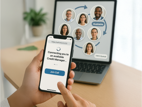 You can send a generic link to customers also and they can connect to an available credit manager from a pool of employees, on a FIFO basis.